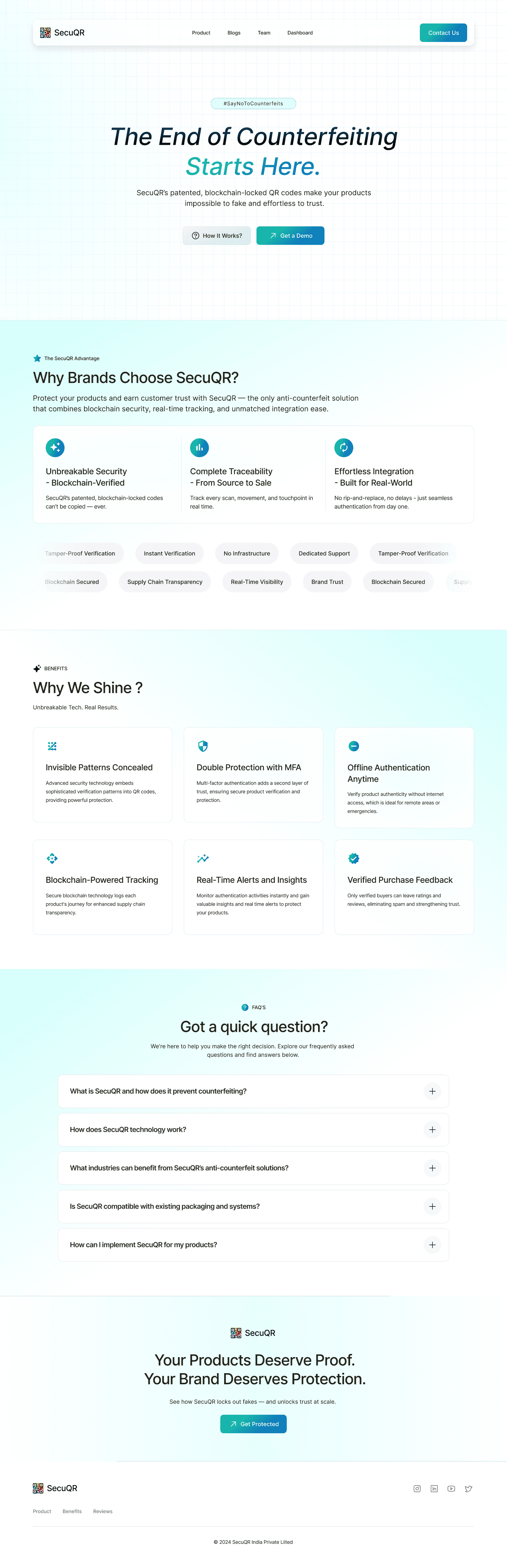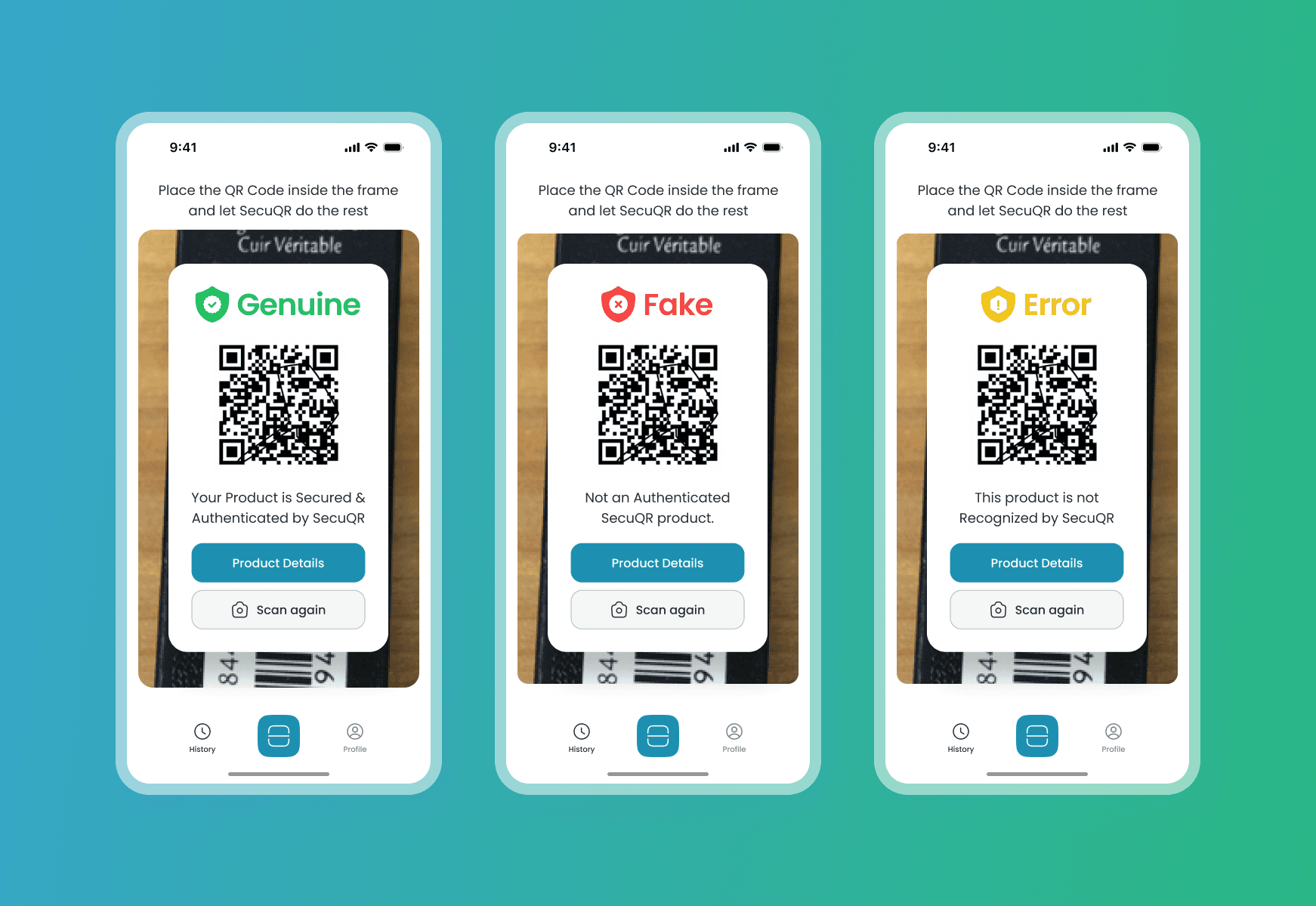 SecuQR is an end-to-end product authenticity verification system designed to help consumers instantly verify products and enable brands to detect and respond to counterfeit activity.